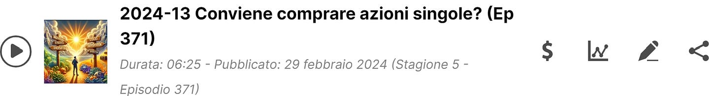 Il contenuto di questa newsletter non va inteso in nessun caso come raccomandazione di invstimento o consulenza finanziaria. Dopo il paywall trovate indicazioni di singole azioni in cui investo io e delle motivazioni per cui le scelgo.