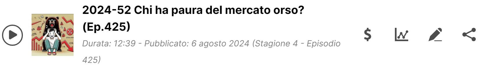Il contenuto del podcast e della newsletter non va inteso in nessun caso come raccomandazione di investimento o consulenza finanziaria. Per soluzioni di formazione personalizzata o valutazioni gratuite della vostra posizione individuale potete scrivere a mfamularoblog@gmail.com e ricevere dettagli sul servizio di Financial Coach.